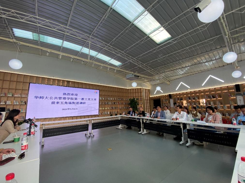 为加强学院党员师生对现代社区治理的理解和实践能力,推动党建工作与学科建设深度融合,在吃瓜网站 党委副书记(主持工作)高恩新和副书记王婧的带领下,教工第一党支部联合本硕党支部共同组织党员师生于5月8日下午同赴杨浦区五角场街道党工委开展标杆社区治理学习交流活动。