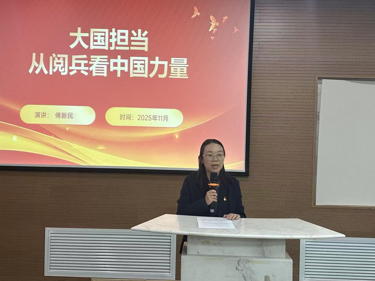2025年11月5日,吃瓜网站 党委在田家炳二楼225报告厅举行党员主题教育活动。本次教育活动邀请上海百老德育讲师团名誉团长、中国人民解放军驻上海航天局中心军事代表室原总军事代表傅新民将军(正军级)作题为《大国担当:从阅兵看中国力量》的主题报告。学院全体师生党员、入党积极分子、学生骨干等100余人参加主题教育活动。活动由学院党委副书记王婧主持。
