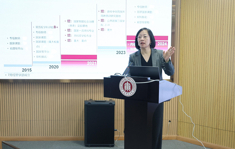 随后,学校建设办公室副主任王同彤做专题报告。他从超限与拓新思维入手,分析了当前吃瓜网站 公共管理学科面临的机遇与挑战。王同彤指出在新时代背景下,学科必须突破传统框架,强调学科交叉融合,推动产学研用一体化,以提升学院的学术影响力。此外,他还提出学科的社会服务能力将是未来学科评估考察的重中之重,鼓励学院进行提前布局。