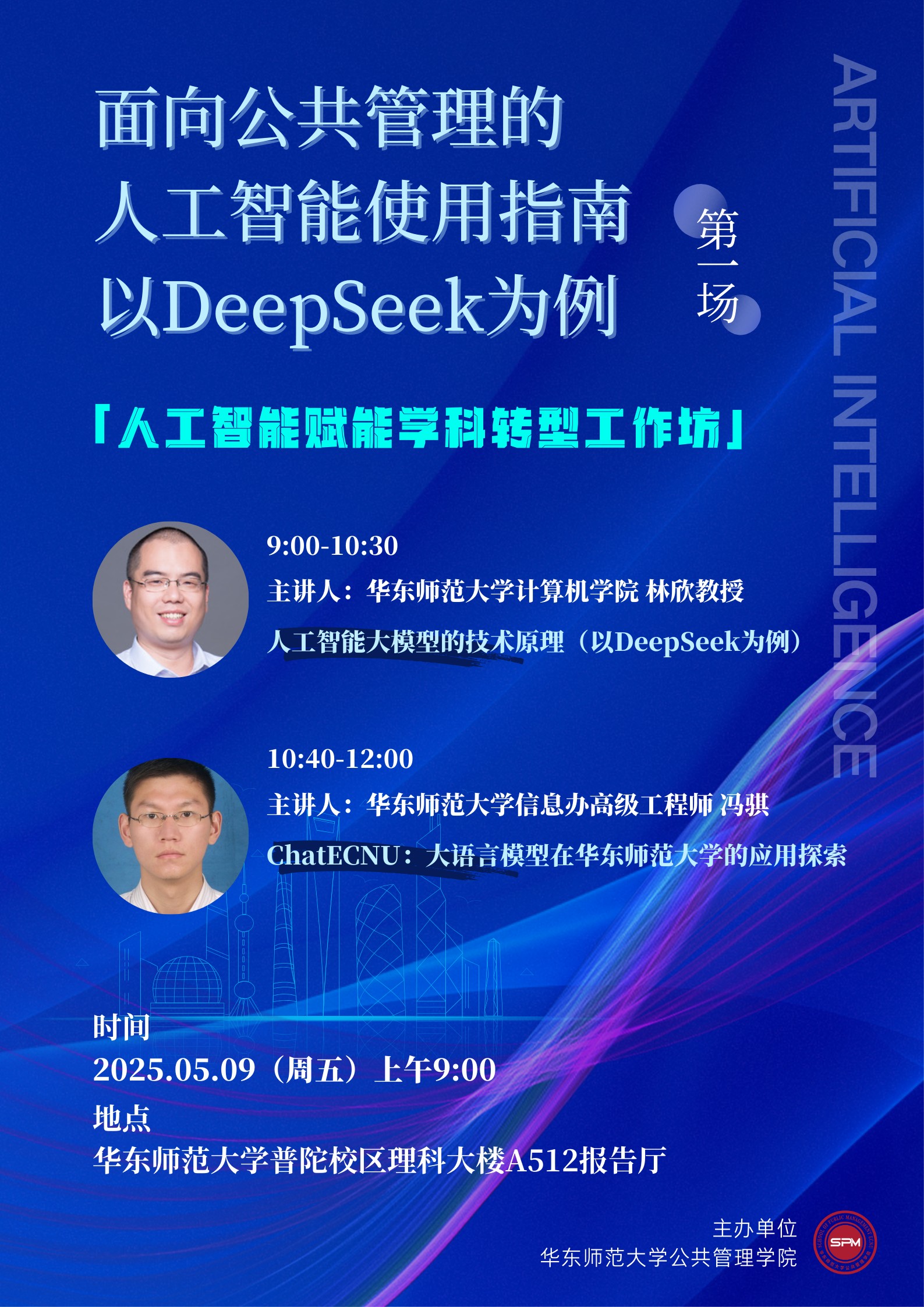 讲座预告 | 「人工智能赋能学科转型工作坊」面向公共管理的人工智能使用指南 (以DeepSeek为例)