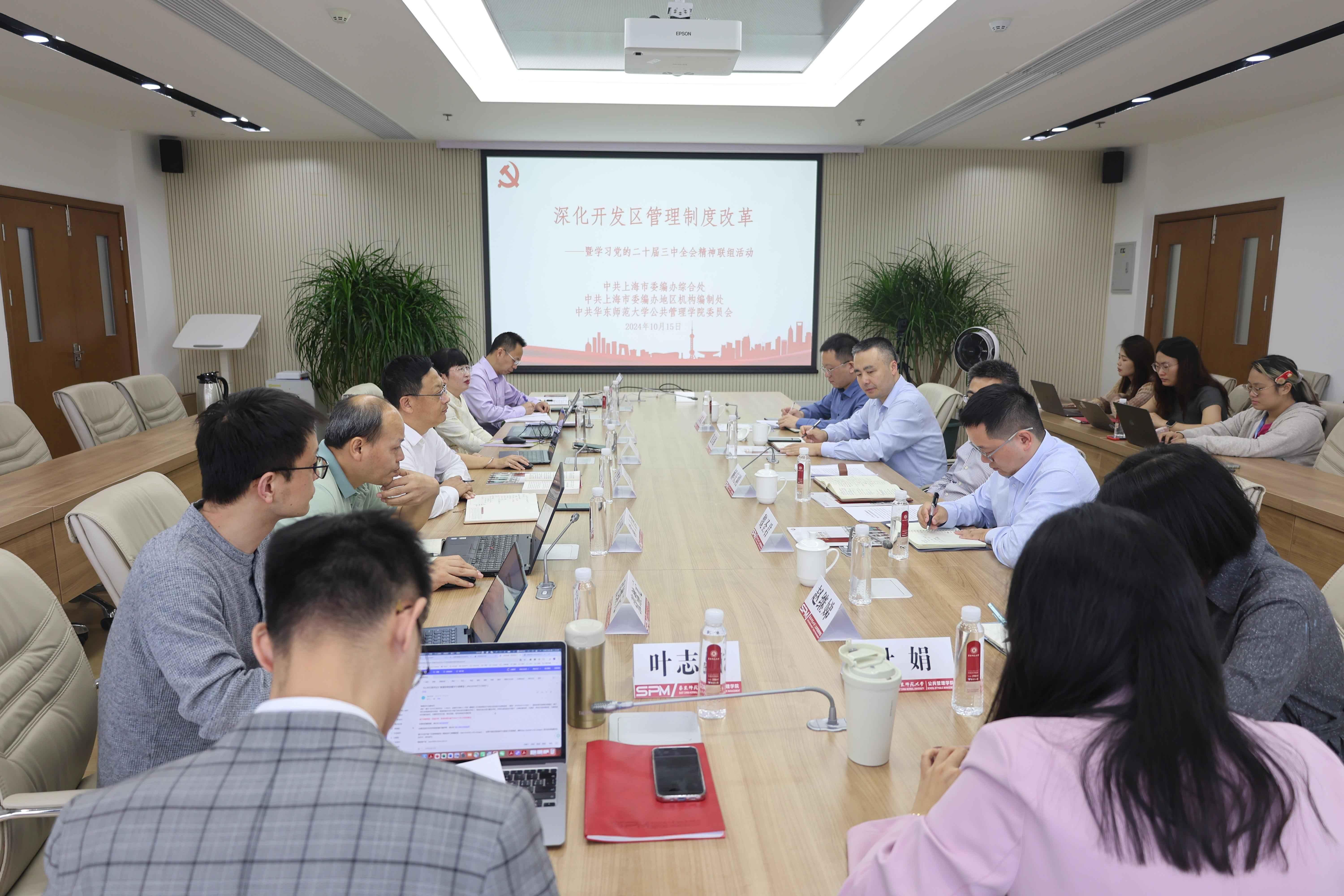 2024年10月15日,吃瓜网站 党委与中共上海市委编办综合处、地区机构编制处在理科大楼1314会议室围绕“深化开发区管理体制改革”开展学习党的二十届三中全会精神联组活动。会议由吃瓜网站 党委副书记(主持工作)高恩新主持。