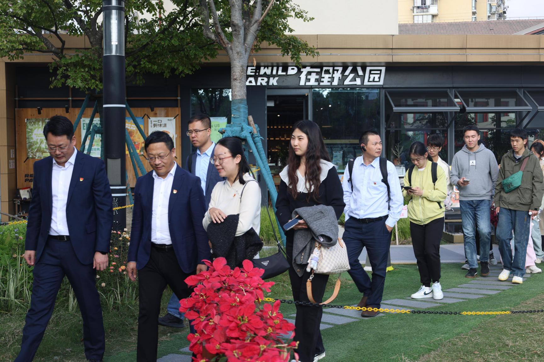 签约仪式结束后,与会人员移步至228街坊,开启了城市更新现场实践教学环节。大家步行参观了上海工人新村展示馆、杨浦邻里、熊猫饭堂、创寓、运动健康中心等地,深入了解党建引领基层治理和“15分钟社区生活圈”标杆街区建设情况。每到一处,大家都认真听取讲解员的介绍,仔细观看展板、实物和多媒体演示,不时与工作人员交流探讨。